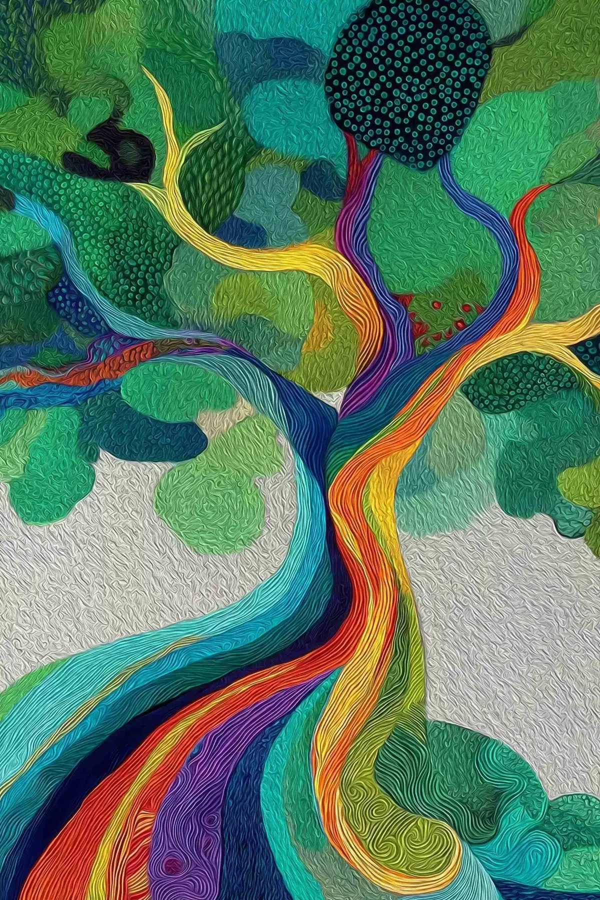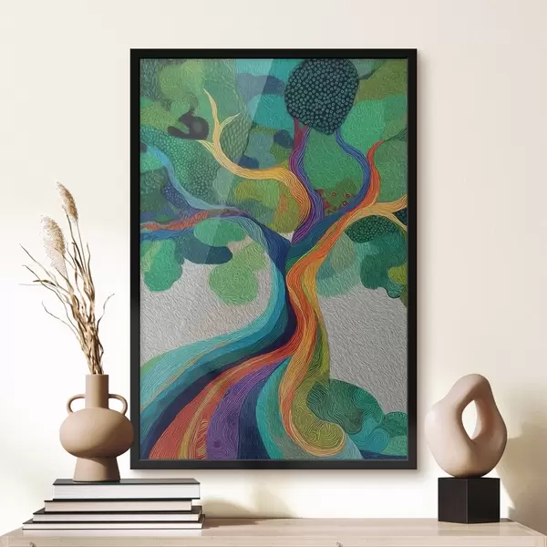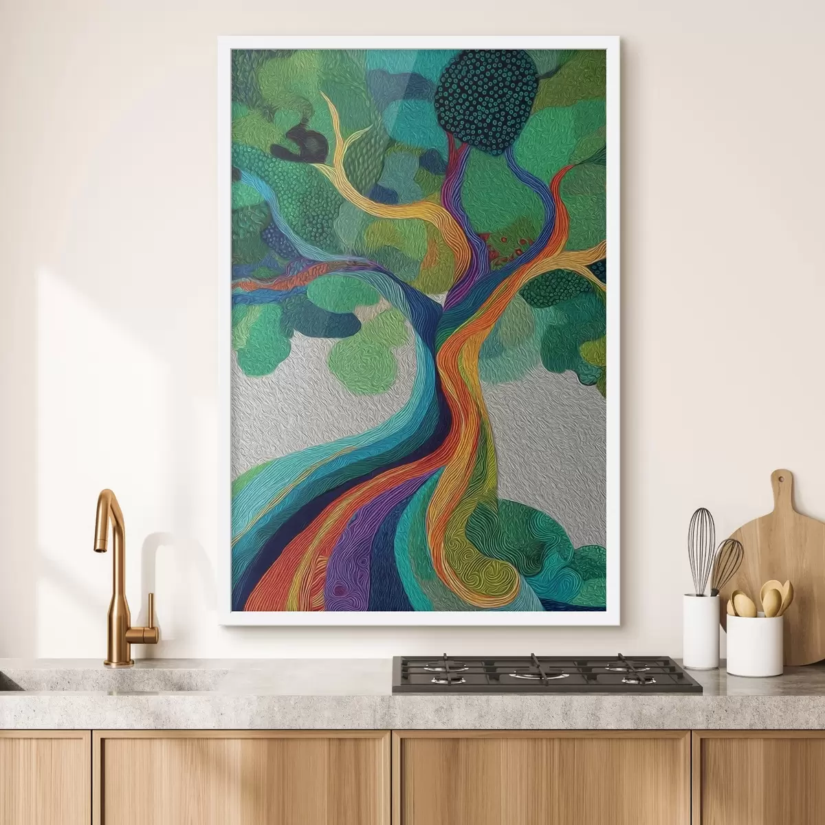 Poster Baum mit Regenbogenästen auf grünem Hintergrund Nr f46173