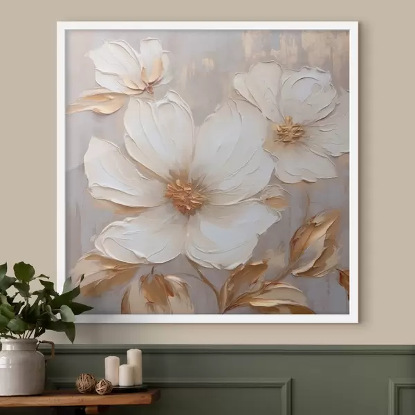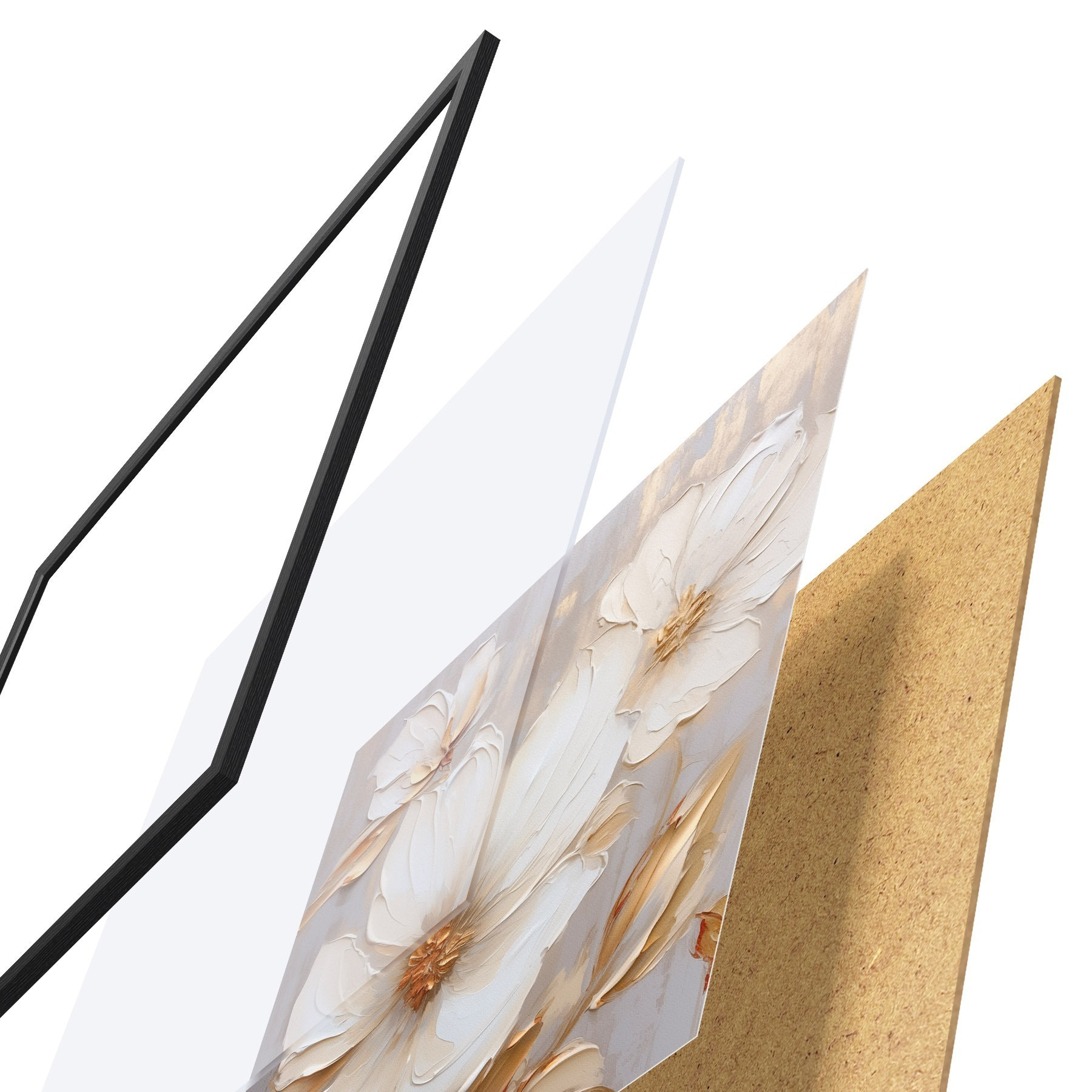 Poster Große strukturierte Blumen mit Pinselstrichen in warmen Farben f46176