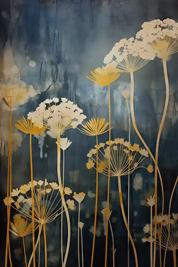 Poster Stilisierte Blumen mit dünnen Stielen auf dunklem Hintergrund Nr f46188