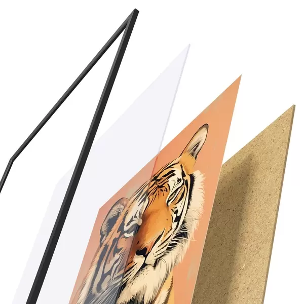 Das Poster besteht aus einem Rahmen, Plexiglas, einem gedruckten Bild und einer Rückwand aus Spanplatten. Dank der Halterungen auf der Rückseite kann das Poster sofort an die Wand gehängt werden.