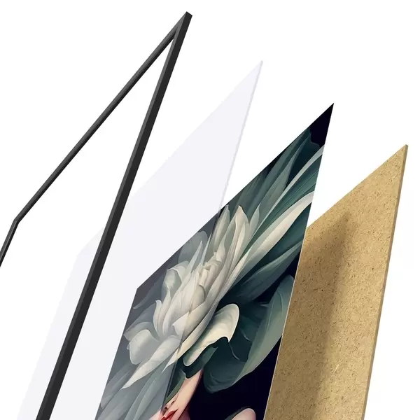 Das Poster besteht aus einem Rahmen, Plexiglas, einem gedruckten Bild und einer Rückwand aus Spanplatten. Dank der Halterungen auf der Rückseite kann das Poster sofort an die Wand gehängt werden.