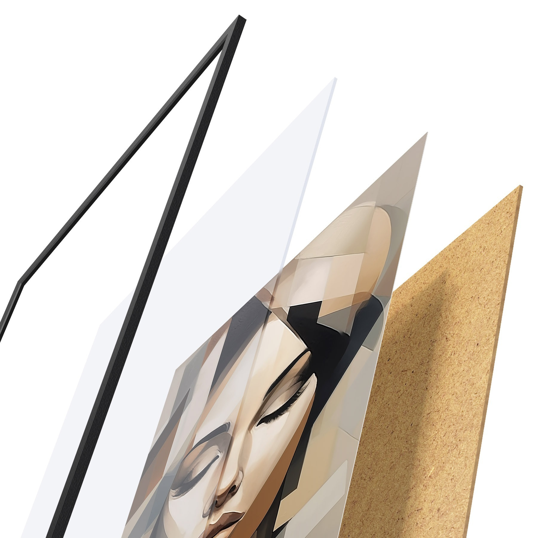 Das Poster besteht aus einem Rahmen, Plexiglas, einem gedruckten Bild und einer Rückwand aus Spanplatten. Dank der Halterungen auf der Rückseite kann das Poster sofort an die Wand gehängt werden.