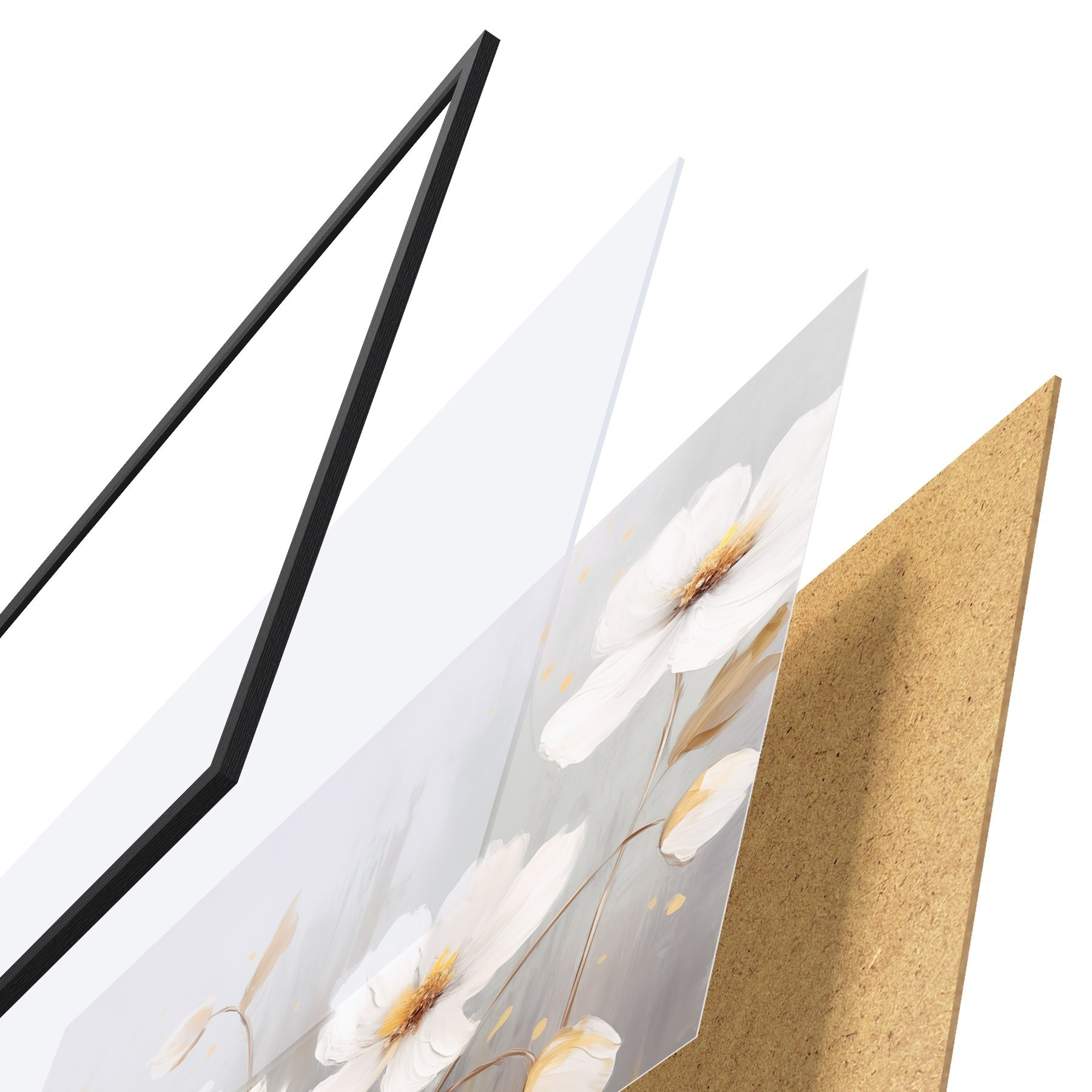 Das Poster besteht aus einem Rahmen, Plexiglas, einem gedruckten Bild und einer Rückwand aus Spanplatten. Dank der Halterungen auf der Rückseite kann das Poster sofort an die Wand gehängt werden.