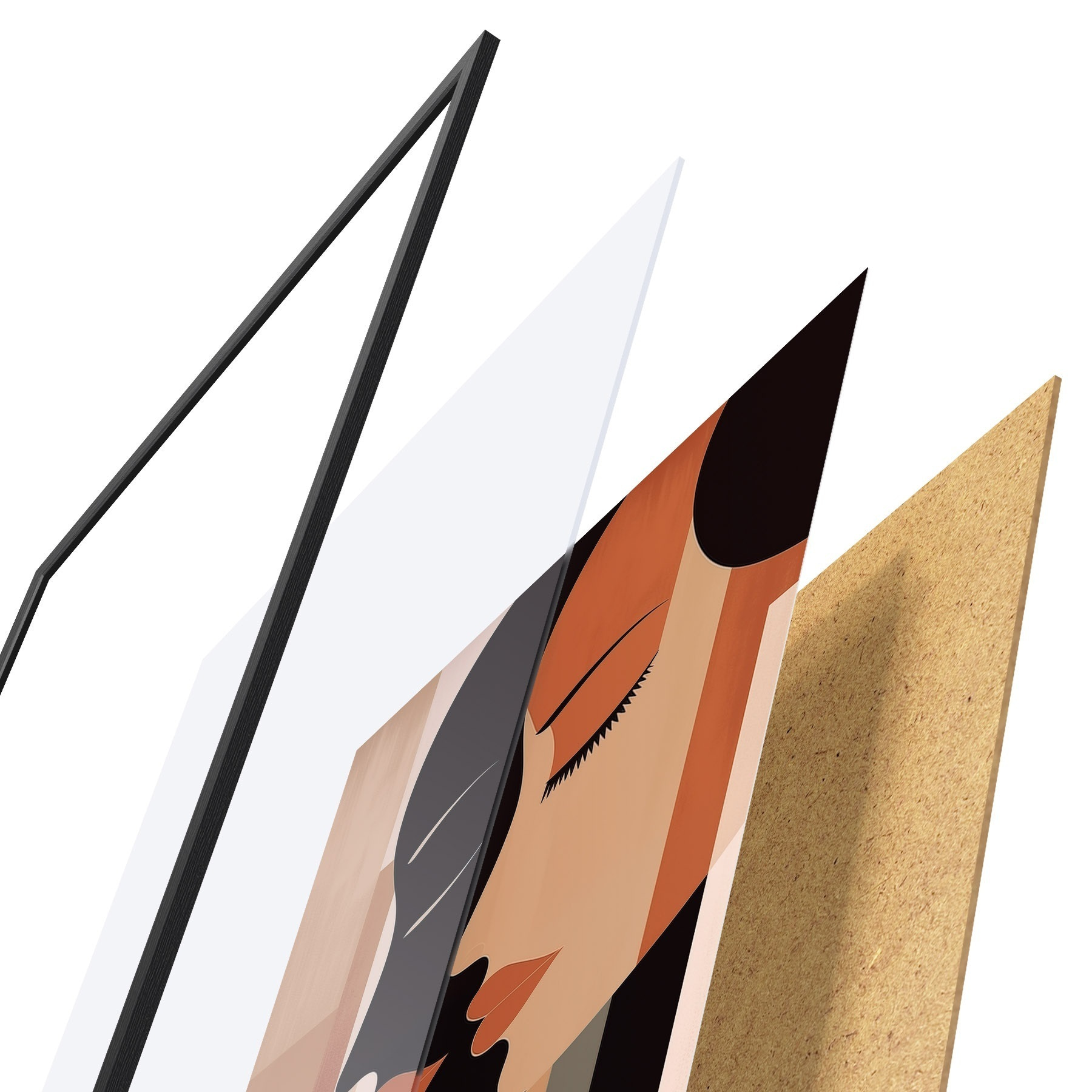 Das Poster besteht aus einem Rahmen, Plexiglas, einem gedruckten Bild und einer Rückwand aus Spanplatten. Dank der Halterungen auf der Rückseite kann das Poster sofort an die Wand gehängt werden.