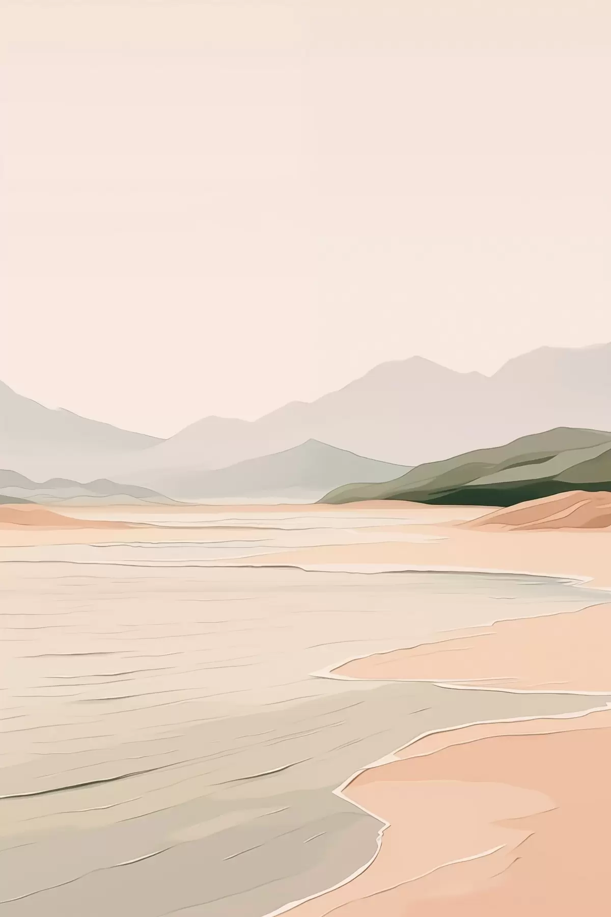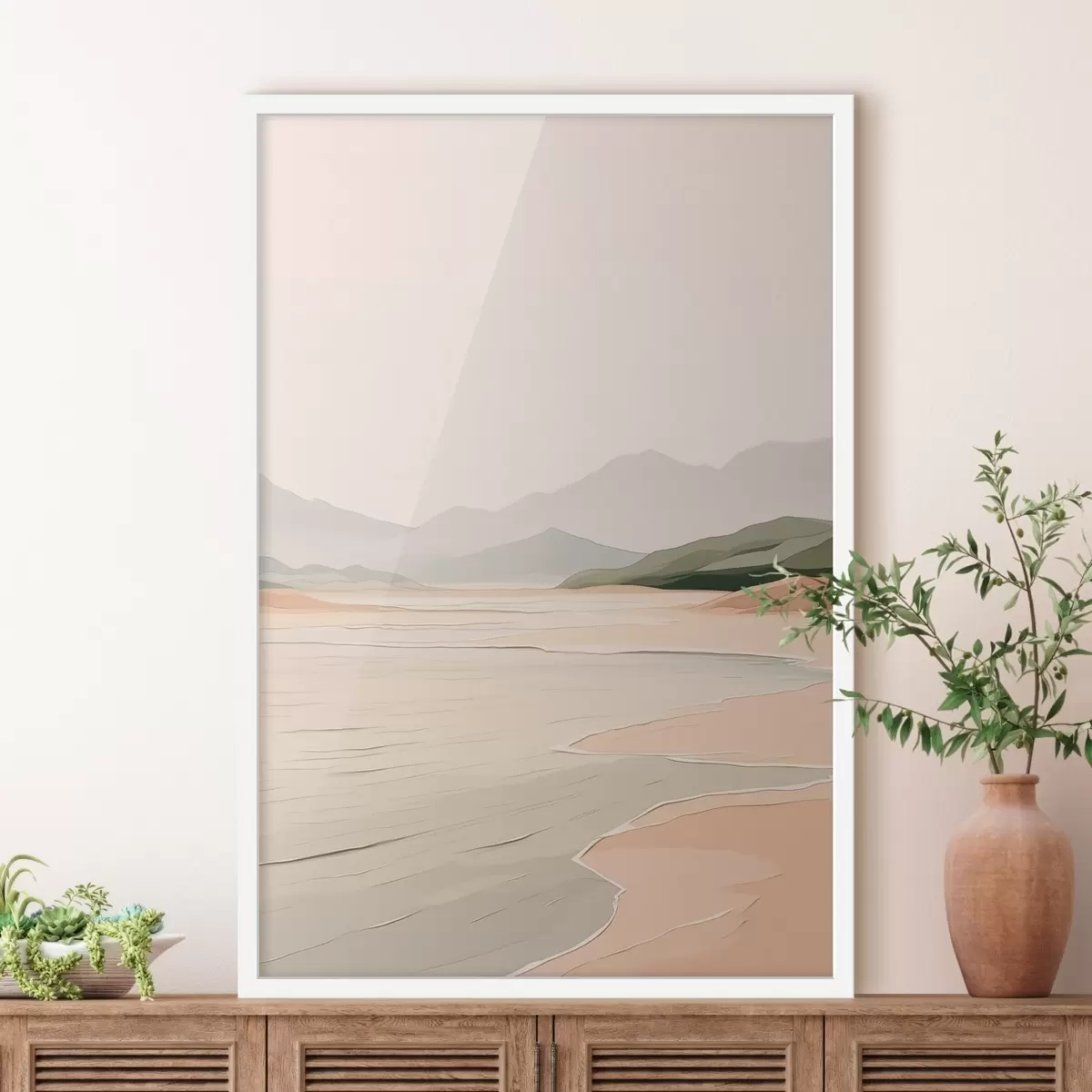 Poster Minimalistische Landschaft mit Bergen und Ufer Nr f46248