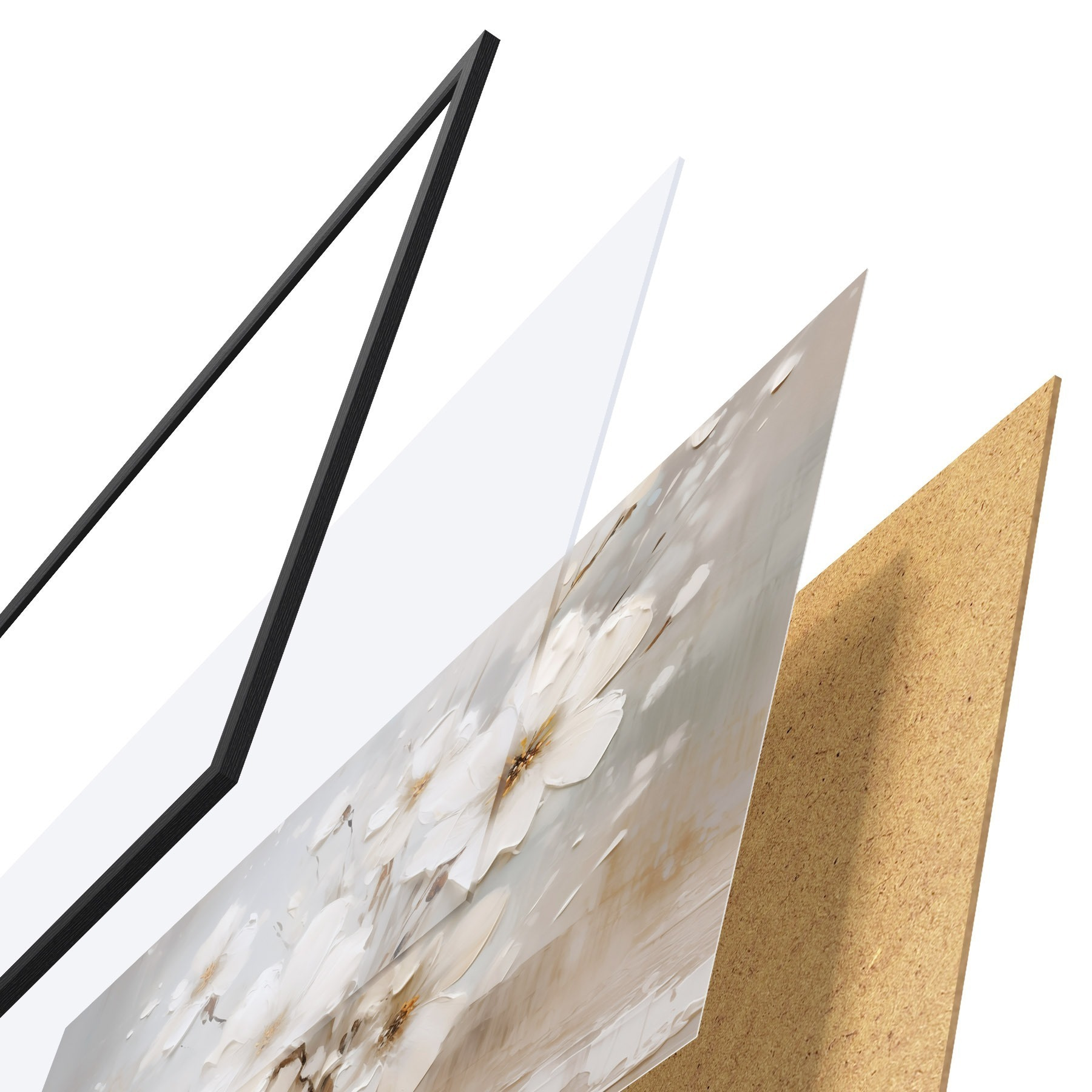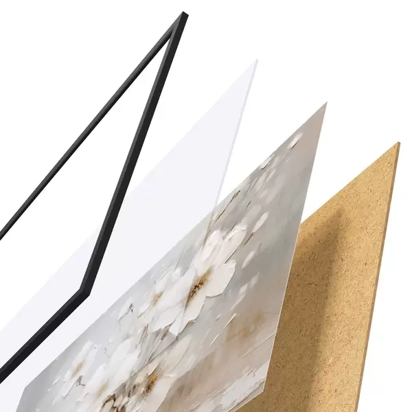Das Poster besteht aus einem Rahmen, Plexiglas, einem gedruckten Bild und einer Rückwand aus Spanplatten. Dank der Halterungen auf der Rückseite kann das Poster sofort an die Wand gehängt werden.