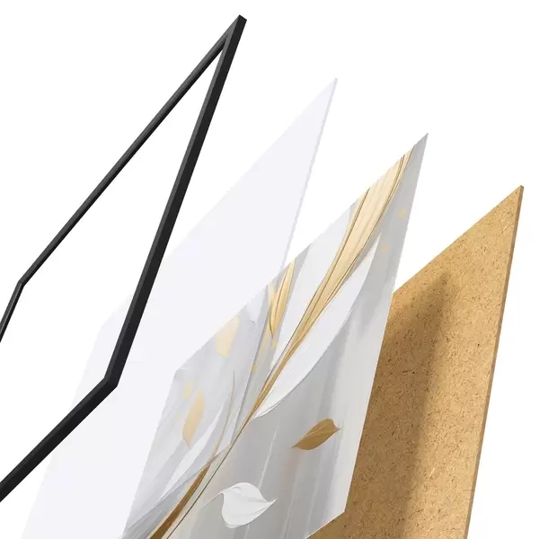 Das Poster besteht aus einem Rahmen, Plexiglas, einem gedruckten Bild und einer Rückwand aus Spanplatten. Dank der Halterungen auf der Rückseite kann das Poster sofort an die Wand gehängt werden.