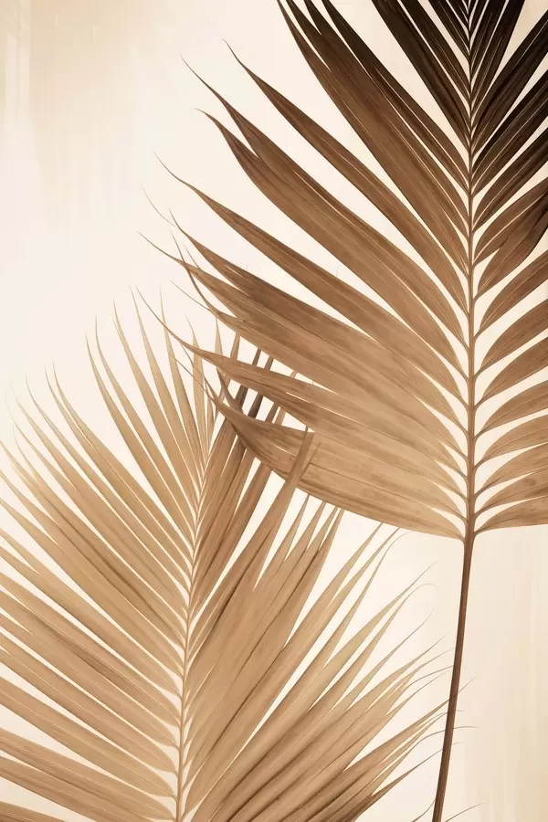 Poster Palmenblätter in Brauntönen, neutraler Hintergrund, minimalistischer Stil, natürliche Beleuchtung, tropisches Flair f46274