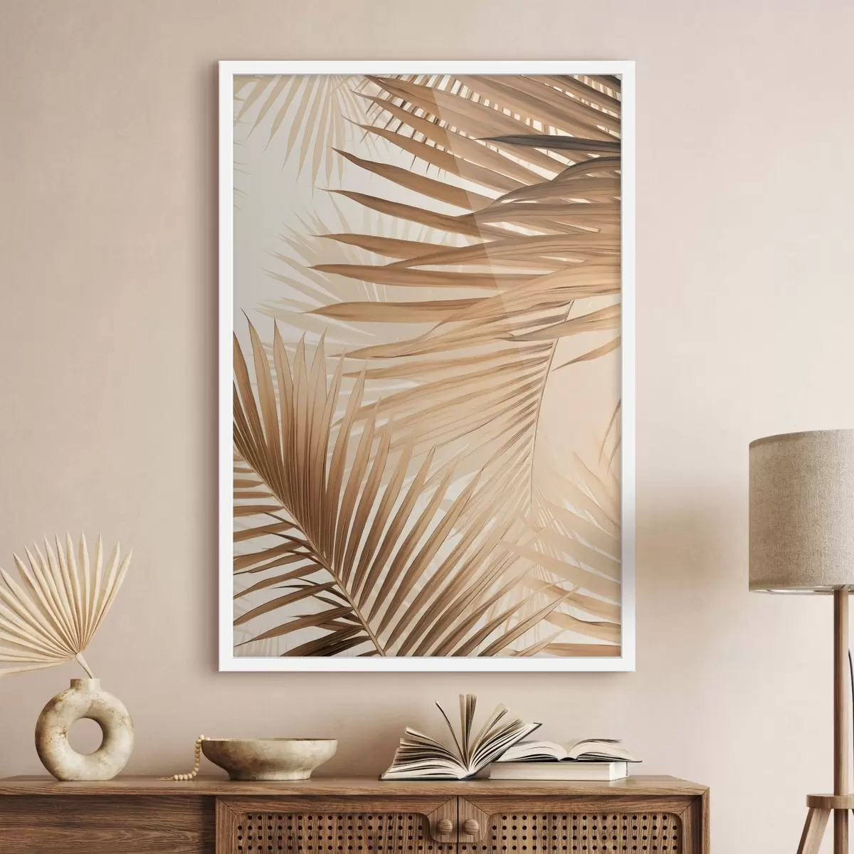 Poster Abstrakte Palmblätter in Brauntönen, tropisch, botanisch, Natur, minimalistisch, elegant, modernes Design Nr f46275