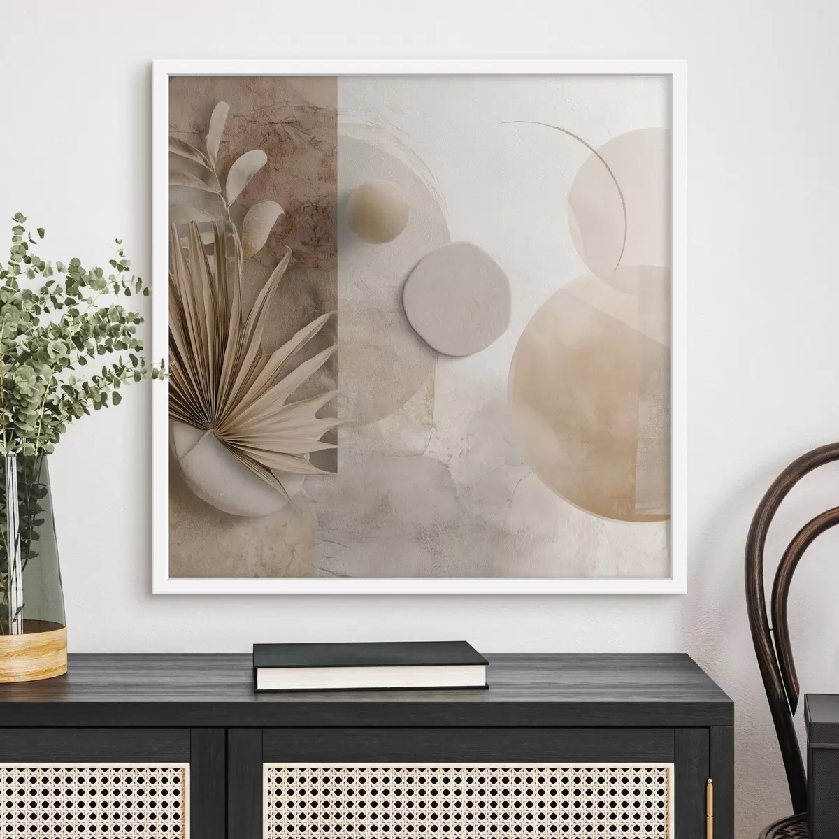 Poster Getrocknete Palmblätter und 3D-Kreise in Beigetönen Nr f46310
