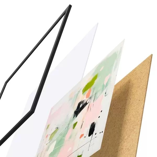 Das Poster besteht aus einem Rahmen, Plexiglas, einem gedruckten Bild und einer Rückwand aus Spanplatten. Dank der Halterungen auf der Rückseite kann das Poster sofort an die Wand gehängt werden.
