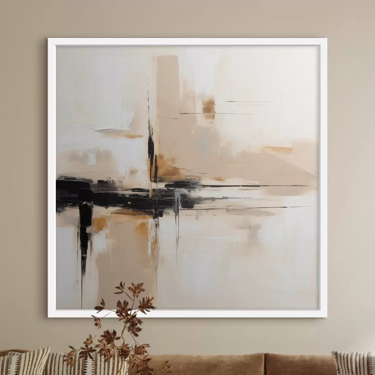 Poster Beige und Schwarz, vertikale Abstraktion im minimalistischen Stil Nr f46326
