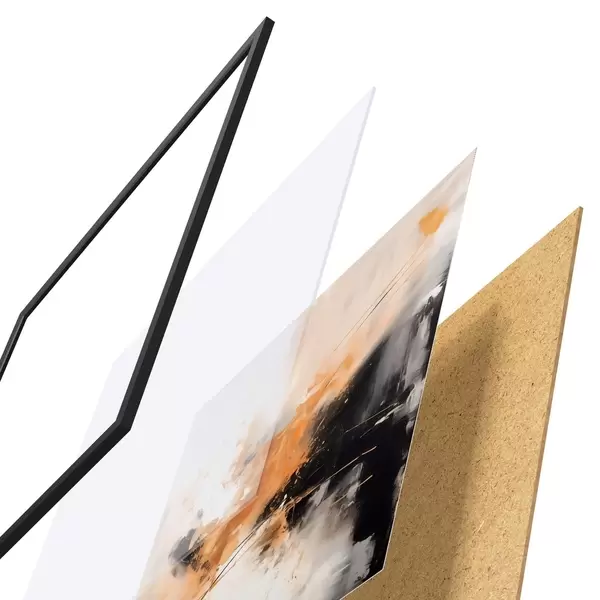 Das Poster besteht aus einem Rahmen, Plexiglas, einem gedruckten Bild und einer Rückwand aus Spanplatten. Dank der Halterungen auf der Rückseite kann das Poster sofort an die Wand gehängt werden.