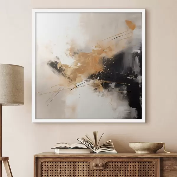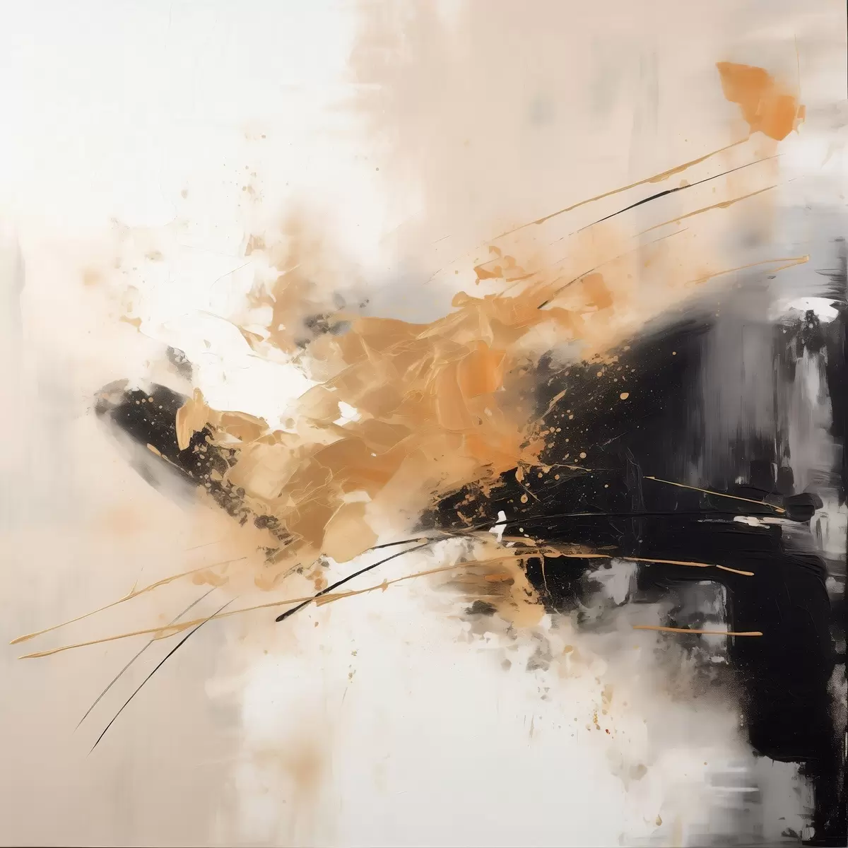 Poster Orangefarbene und schwarze Striche, moderne Abstraktion f46327