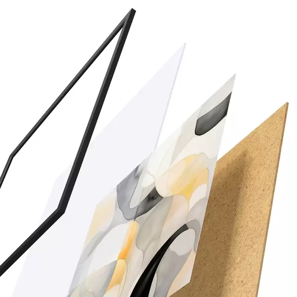 Das Poster besteht aus einem Rahmen, Plexiglas, einem gedruckten Bild und einer Rückwand aus Spanplatten. Dank der Halterungen auf der Rückseite kann das Poster sofort an die Wand gehängt werden.