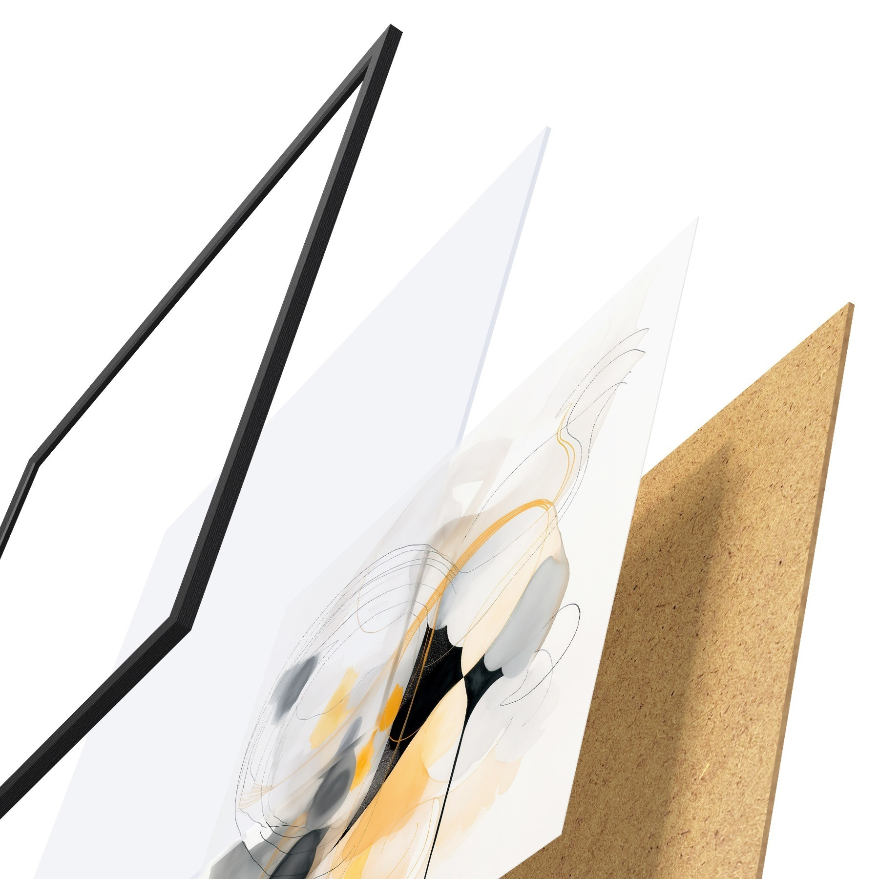Das Poster besteht aus einem Rahmen, Plexiglas, einem gedruckten Bild und einer Rückwand aus Spanplatten. Dank der Halterungen auf der Rückseite kann das Poster sofort an die Wand gehängt werden.