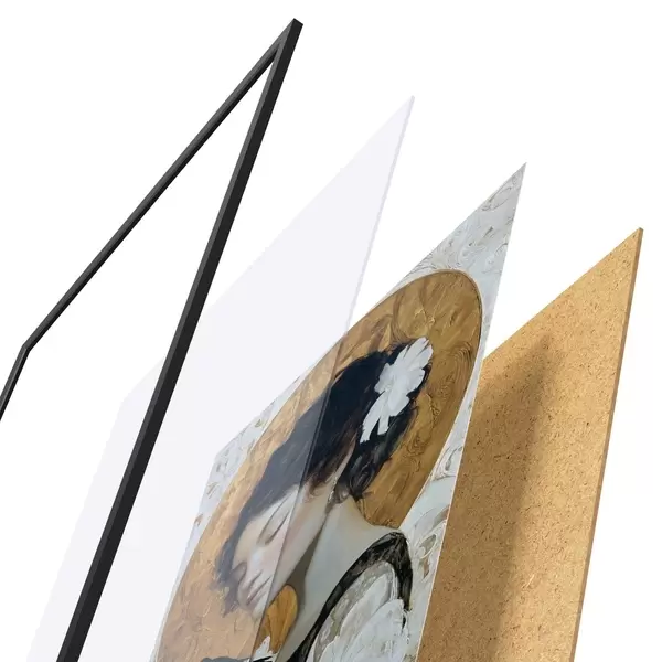 Das Poster besteht aus einem Rahmen, Plexiglas, einem gedruckten Bild und einer Rückwand aus Spanplatten. Dank der Halterungen auf der Rückseite kann das Poster sofort an die Wand gehängt werden.