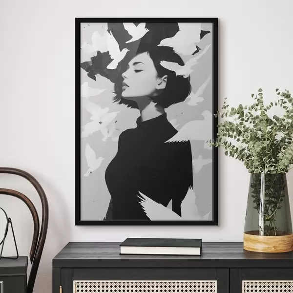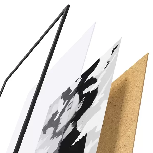 Das Poster besteht aus einem Rahmen, Plexiglas, einem gedruckten Bild und einer Rückwand aus Spanplatten. Dank der Halterungen auf der Rückseite kann das Poster sofort an die Wand gehängt werden.