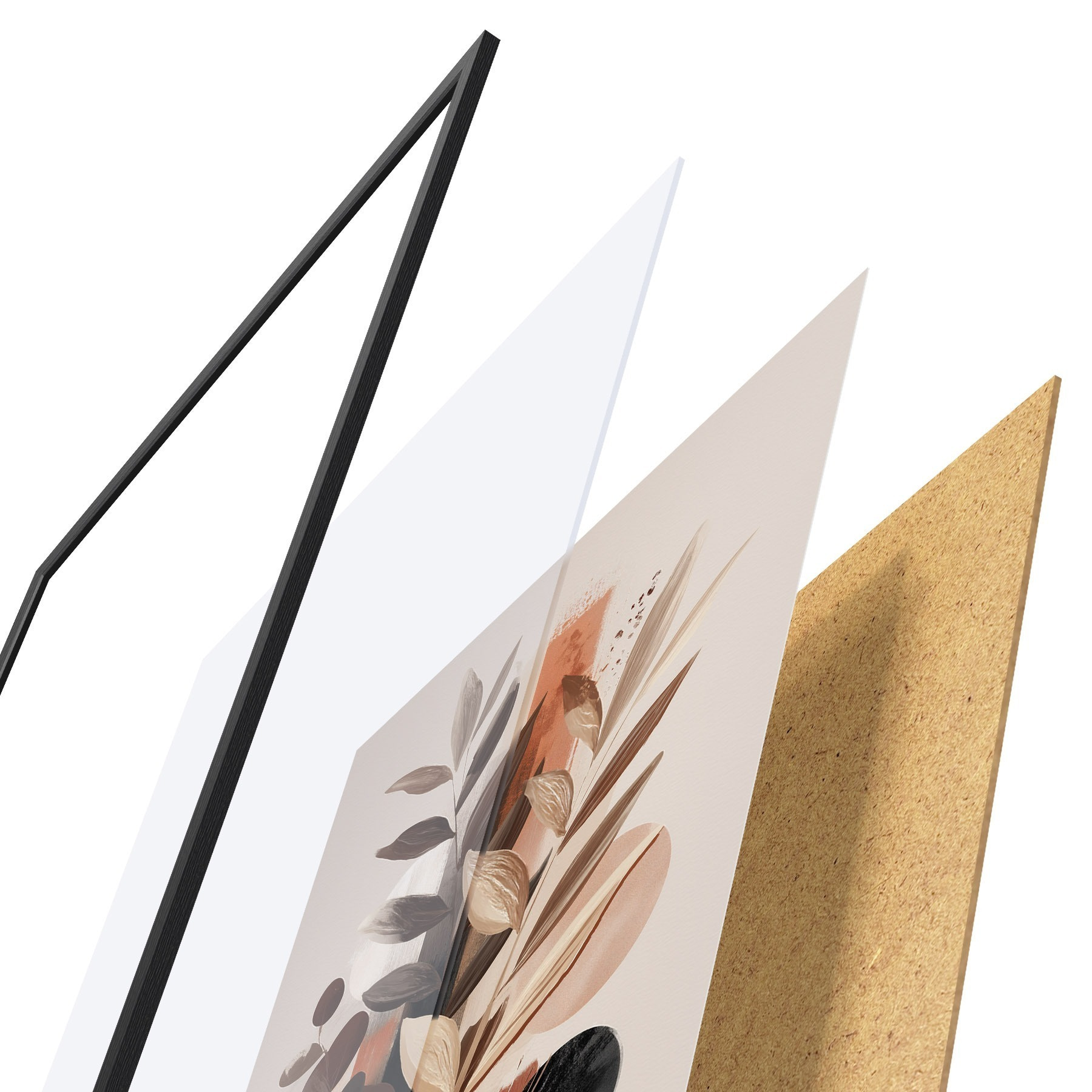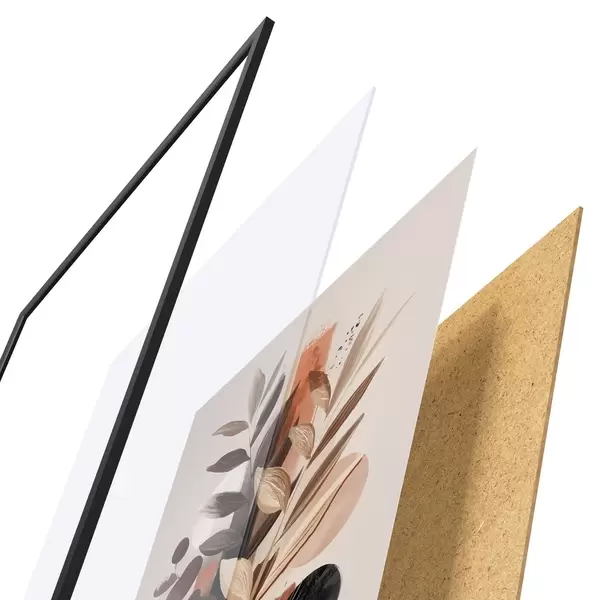 Das Poster besteht aus einem Rahmen, Plexiglas, einem gedruckten Bild und einer Rückwand aus Spanplatten. Dank der Halterungen auf der Rückseite kann das Poster sofort an die Wand gehängt werden.