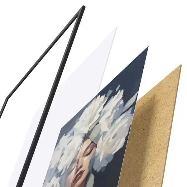 Das Poster besteht aus einem Rahmen, Plexiglas, einem gedruckten Bild und einer Rückwand aus Spanplatten. Dank der Halterungen auf der Rückseite kann das Poster sofort an die Wand gehängt werden.