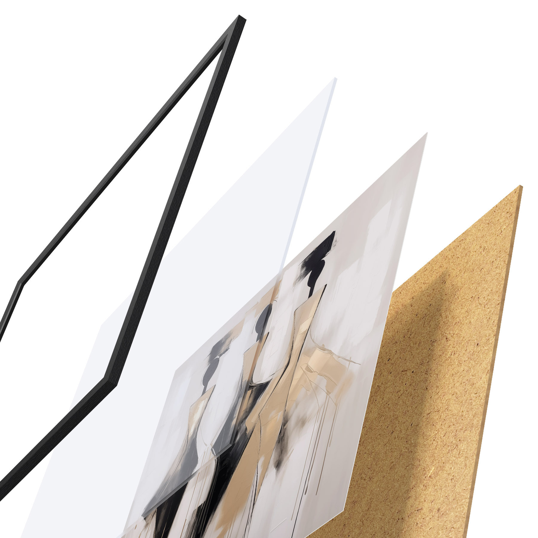 Das Poster besteht aus einem Rahmen, Plexiglas, einem gedruckten Bild und einer Rückwand aus Spanplatten. Dank der Halterungen auf der Rückseite kann das Poster sofort an die Wand gehängt werden.