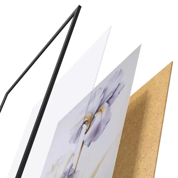 Das Poster besteht aus einem Rahmen, Plexiglas, einem gedruckten Bild und einer Rückwand aus Spanplatten. Dank der Halterungen auf der Rückseite kann das Poster sofort an die Wand gehängt werden.