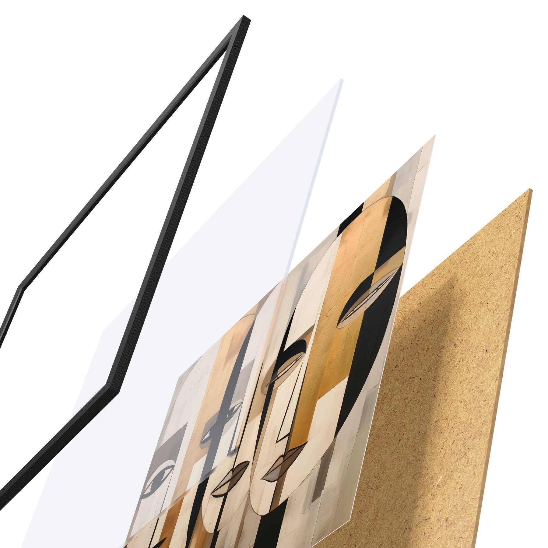 Das Poster besteht aus einem Rahmen, Plexiglas, einem gedruckten Bild und einer Rückwand aus Spanplatten. Dank der Halterungen auf der Rückseite kann das Poster sofort an die Wand gehängt werden.