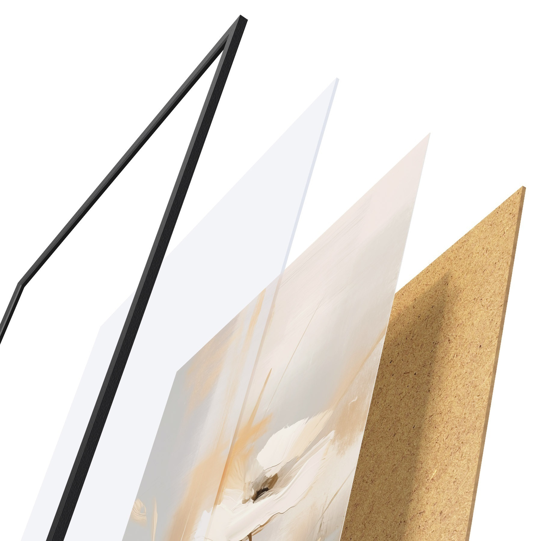 Das Poster besteht aus einem Rahmen, Plexiglas, einem gedruckten Bild und einer Rückwand aus Spanplatten. Dank der Halterungen auf der Rückseite kann das Poster sofort an die Wand gehängt werden.