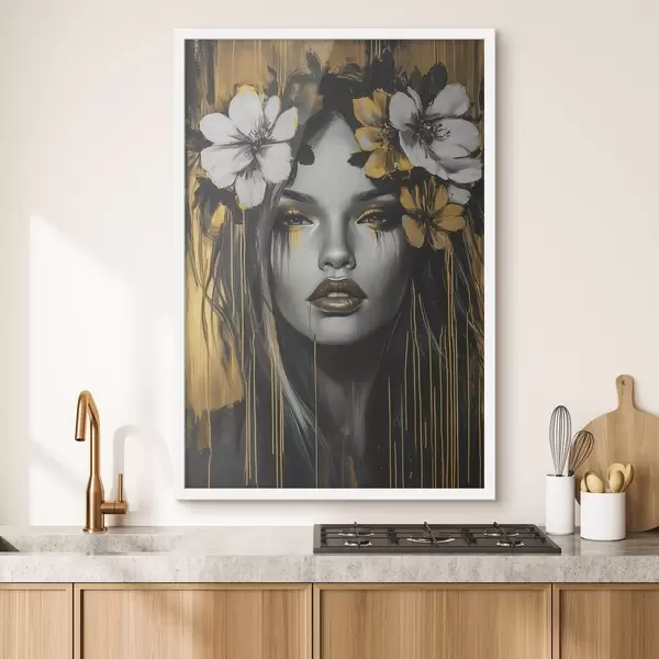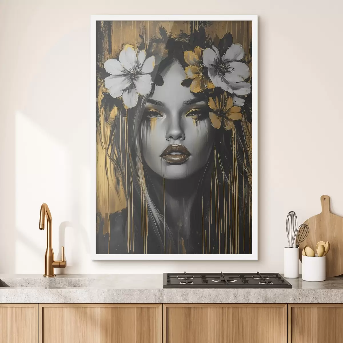 Poster Abstraktes Porträt einer Frau mit Blumen Nr f46454