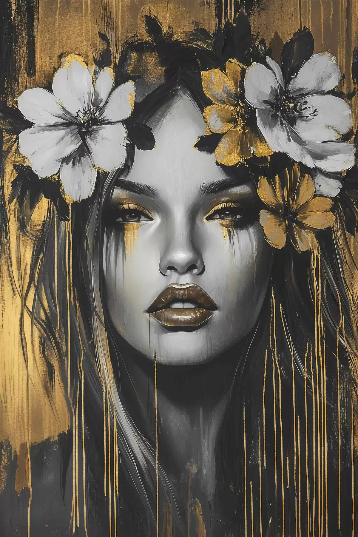Poster Abstraktes Porträt einer Frau mit Blumen Nr f46454