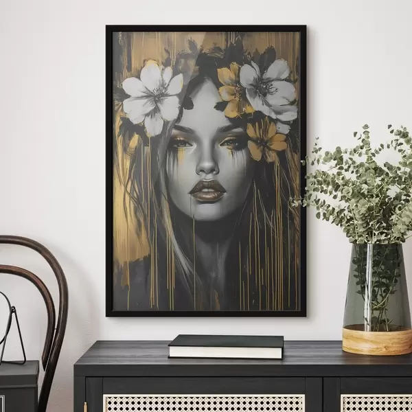 Poster Abstraktes Porträt einer Frau mit Blumen f46454