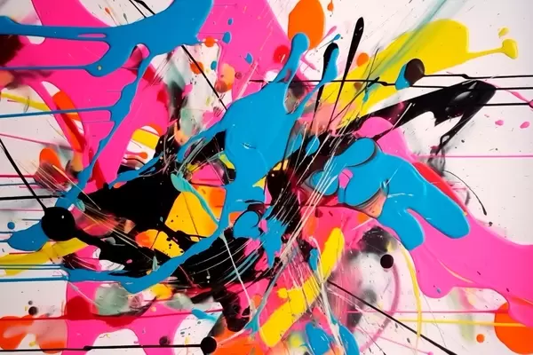 Poster Leuchtender Farbspritzer. Tropfender abstrakter Stil Nr f46478