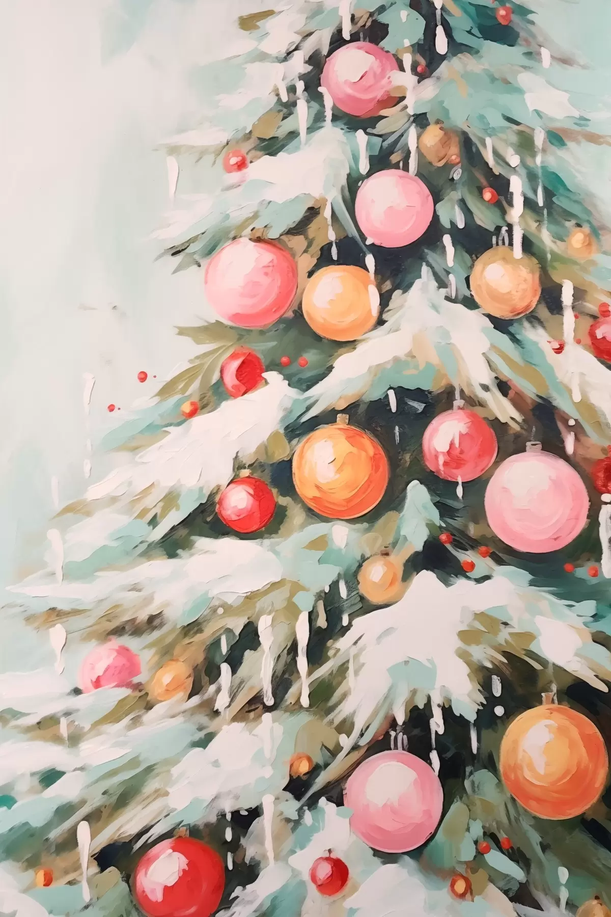 Poster Weihnachtsbaum mit Schnee und rosa Kugeln Nr f46480