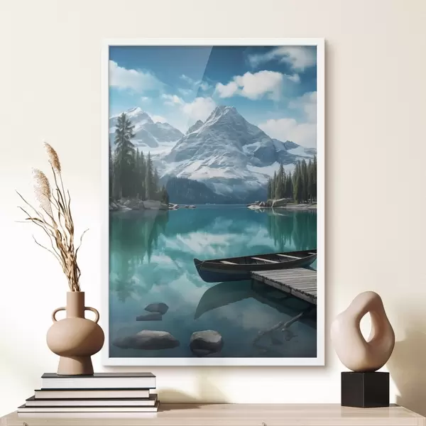 Poster Alpensee mit Kanu und schneebedeckten Gipfeln Nr f46481