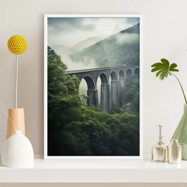 Poster Steinviadukt über nebligem Waldtal Nr f46483