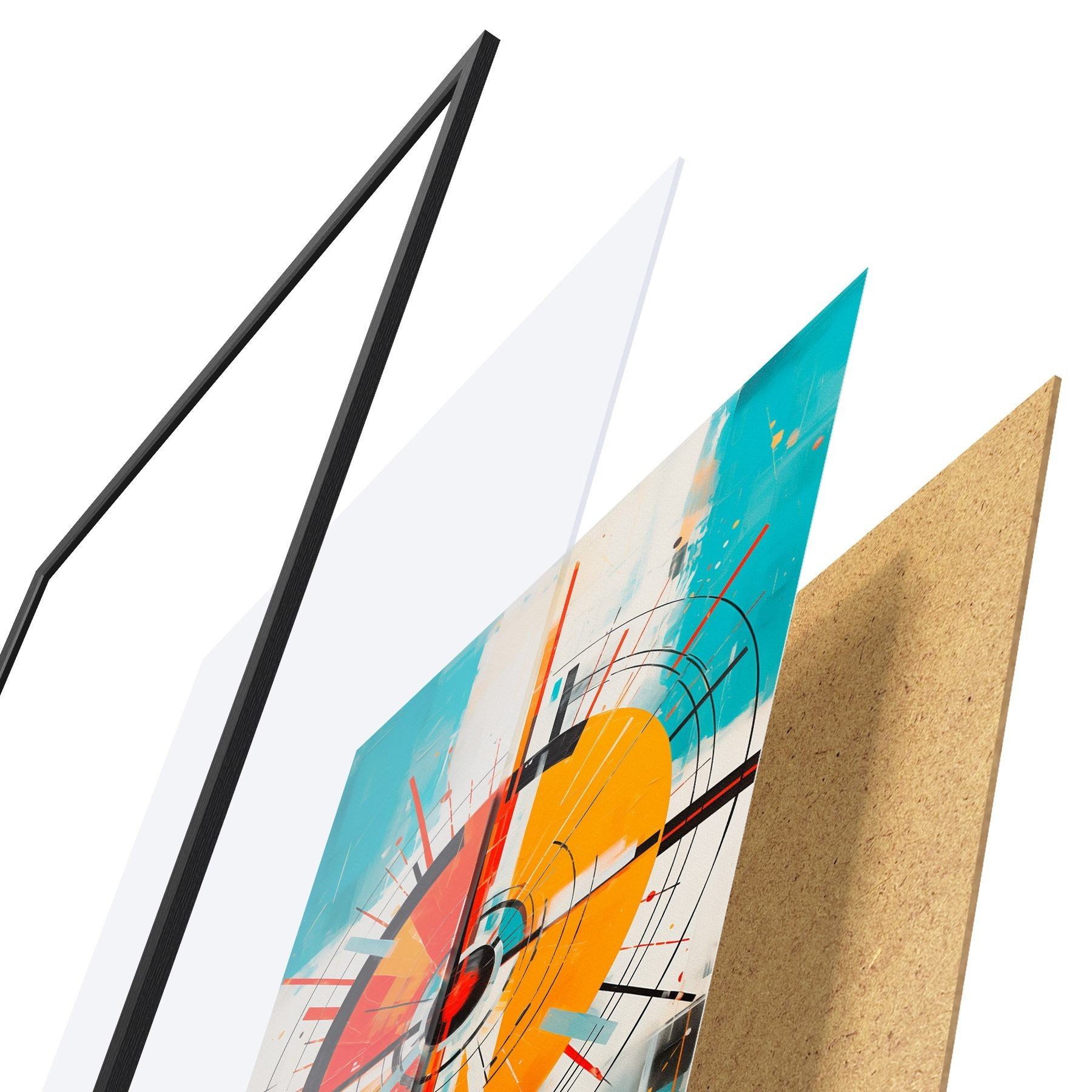 Das Poster besteht aus einem Rahmen, Plexiglas, einem gedruckten Bild und einer Rückwand aus Spanplatten. Dank der Halterungen auf der Rückseite kann das Poster sofort an die Wand gehängt werden.