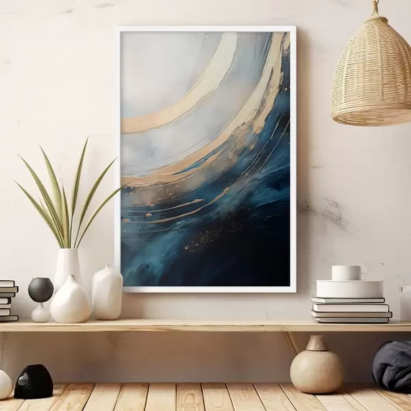 Poster Breite Leuchtbögen auf tiefblauem Hintergrund f46487