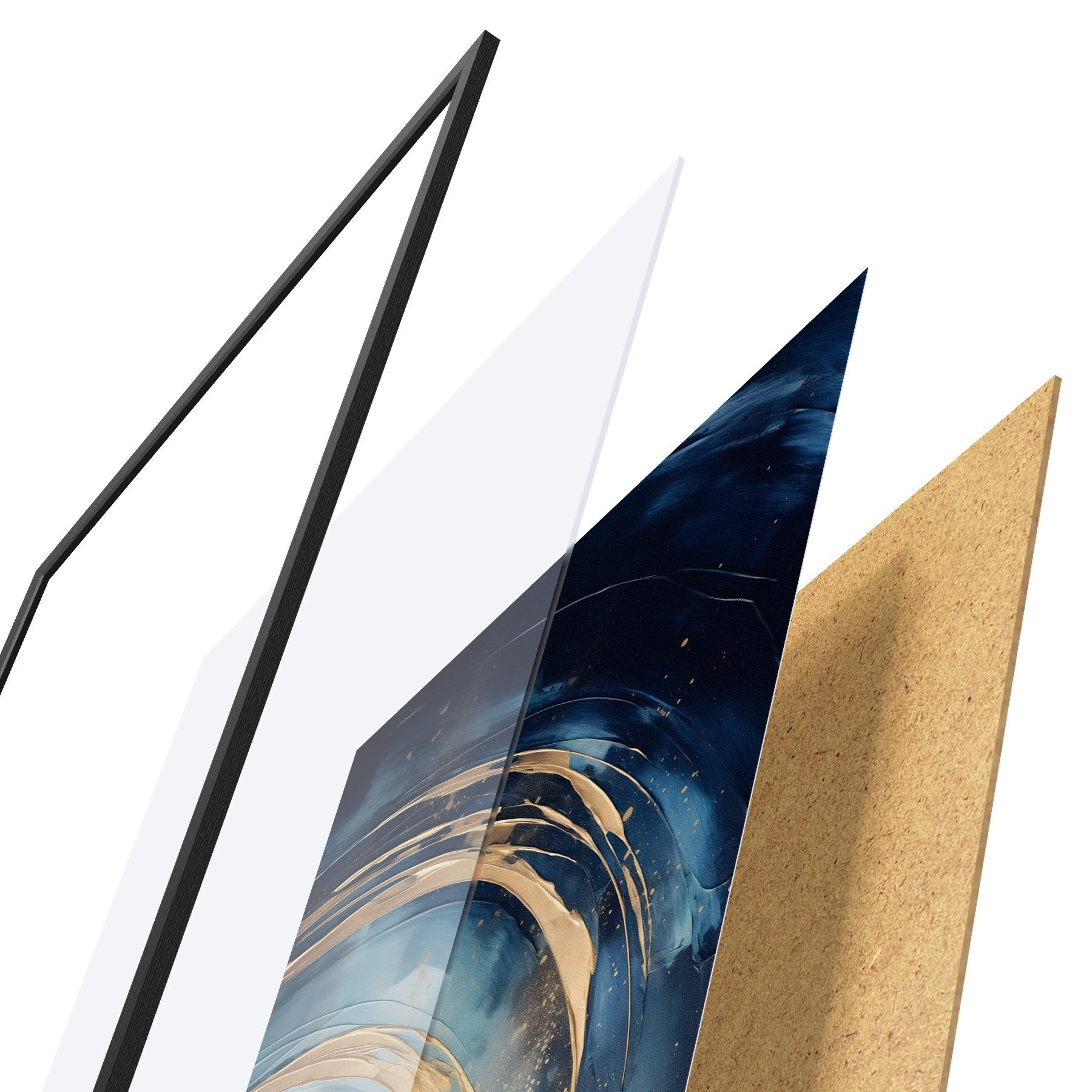 Das Poster besteht aus einem Rahmen, Plexiglas, einem gedruckten Bild und einer Rückwand aus Spanplatten. Dank der Halterungen auf der Rückseite kann das Poster sofort an die Wand gehängt werden.