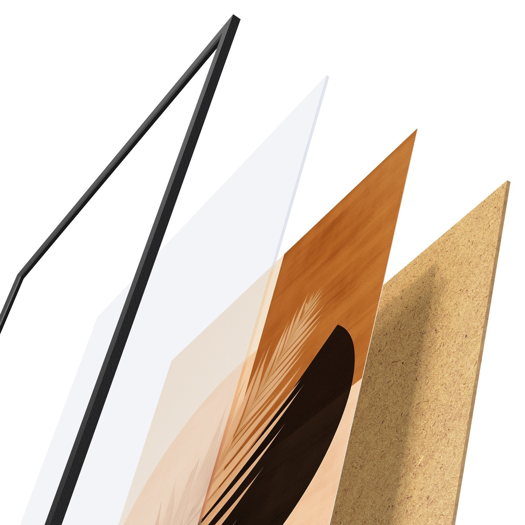 Das Poster besteht aus einem Rahmen, Plexiglas, einem gedruckten Bild und einer Rückwand aus Spanplatten. Dank der Halterungen auf der Rückseite kann das Poster sofort an die Wand gehängt werden.