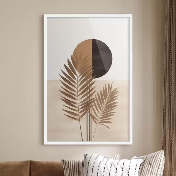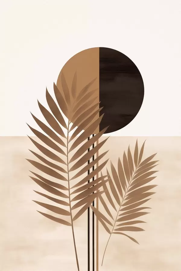 Poster Zwei Palmwedel mit geteiltem Sonnenmotiv Nr f46491