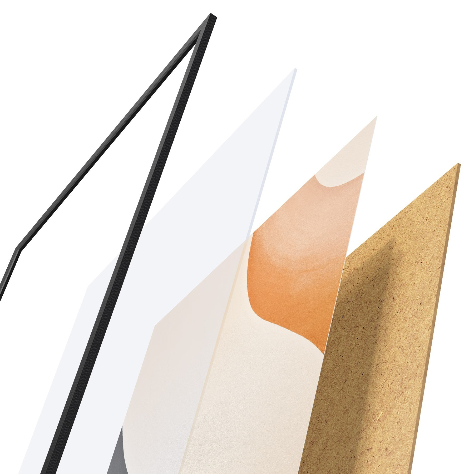 Das Poster besteht aus einem Rahmen, Plexiglas, einem gedruckten Bild und einer Rückwand aus Spanplatten. Dank der Halterungen auf der Rückseite kann das Poster sofort an die Wand gehängt werden.