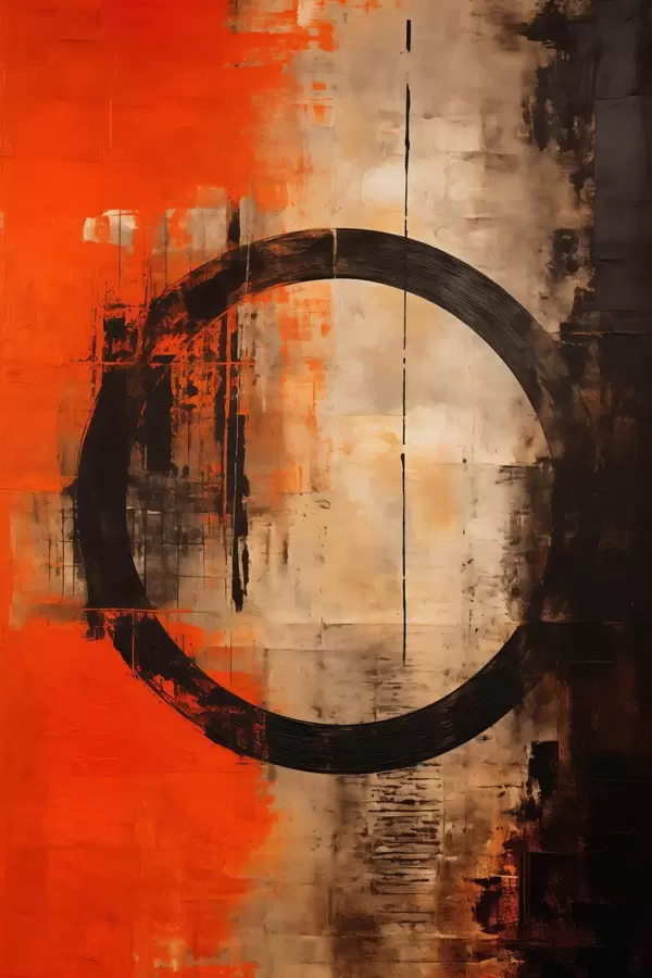 Poster Abstraktes Bild mit großem schwarzen Kreis und warmen Texturen Nr f46528