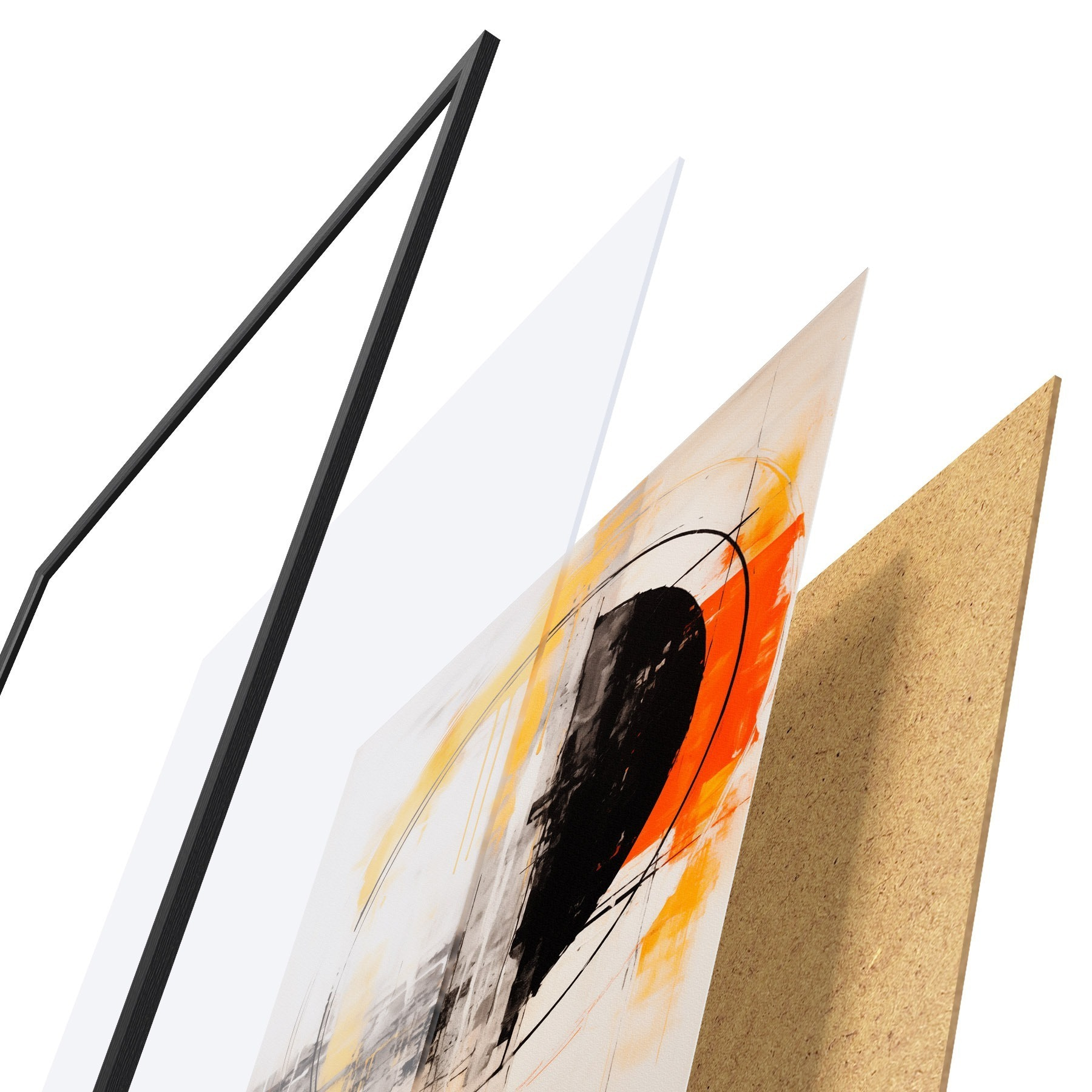 Das Poster besteht aus einem Rahmen, Plexiglas, einem gedruckten Bild und einer Rückwand aus Spanplatten. Dank der Halterungen auf der Rückseite kann das Poster sofort an die Wand gehängt werden.