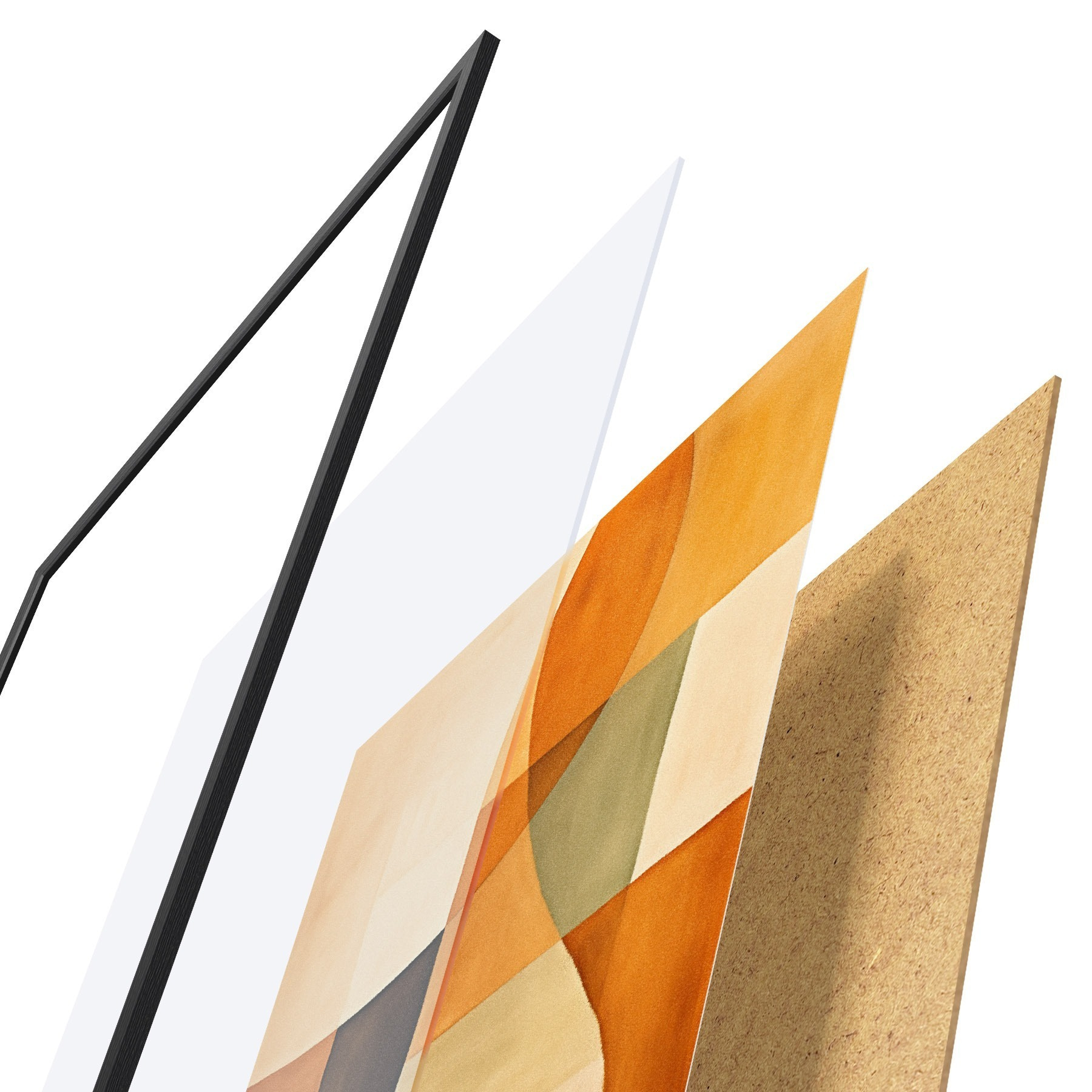 Das Poster besteht aus einem Rahmen, Plexiglas, einem gedruckten Bild und einer Rückwand aus Spanplatten. Dank der Halterungen auf der Rückseite kann das Poster sofort an die Wand gehängt werden.
