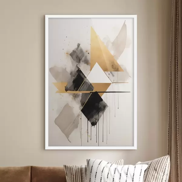 Poster Geometrie mit Dreiecken und einem schwarzen Rhombus, beige Striche Nr f46539