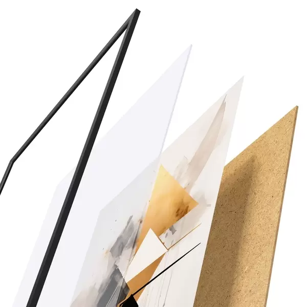 Das Poster besteht aus einem Rahmen, Plexiglas, einem gedruckten Bild und einer Rückwand aus Spanplatten. Dank der Halterungen auf der Rückseite kann das Poster sofort an die Wand gehängt werden.