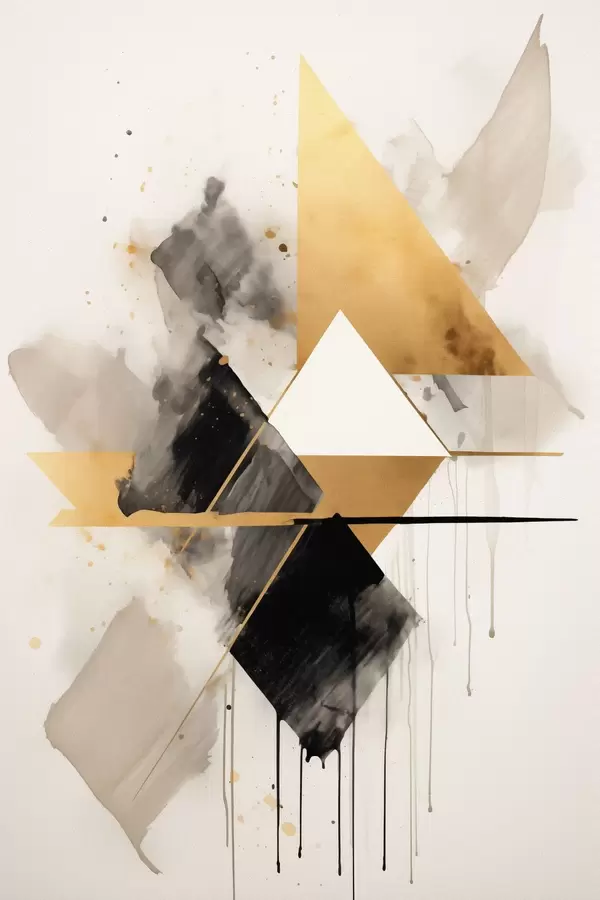 Poster Geometrie mit Dreiecken und einem schwarzen Rhombus, beige Striche Nr f46539