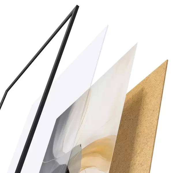 Das Poster besteht aus einem Rahmen, Plexiglas, einem gedruckten Bild und einer Rückwand aus Spanplatten. Dank der Halterungen auf der Rückseite kann das Poster sofort an die Wand gehängt werden.