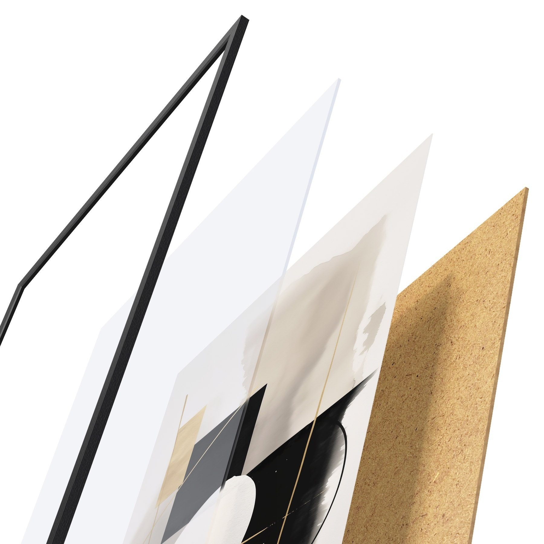 Das Poster besteht aus einem Rahmen, Plexiglas, einem gedruckten Bild und einer Rückwand aus Spanplatten. Dank der Halterungen auf der Rückseite kann das Poster sofort an die Wand gehängt werden.