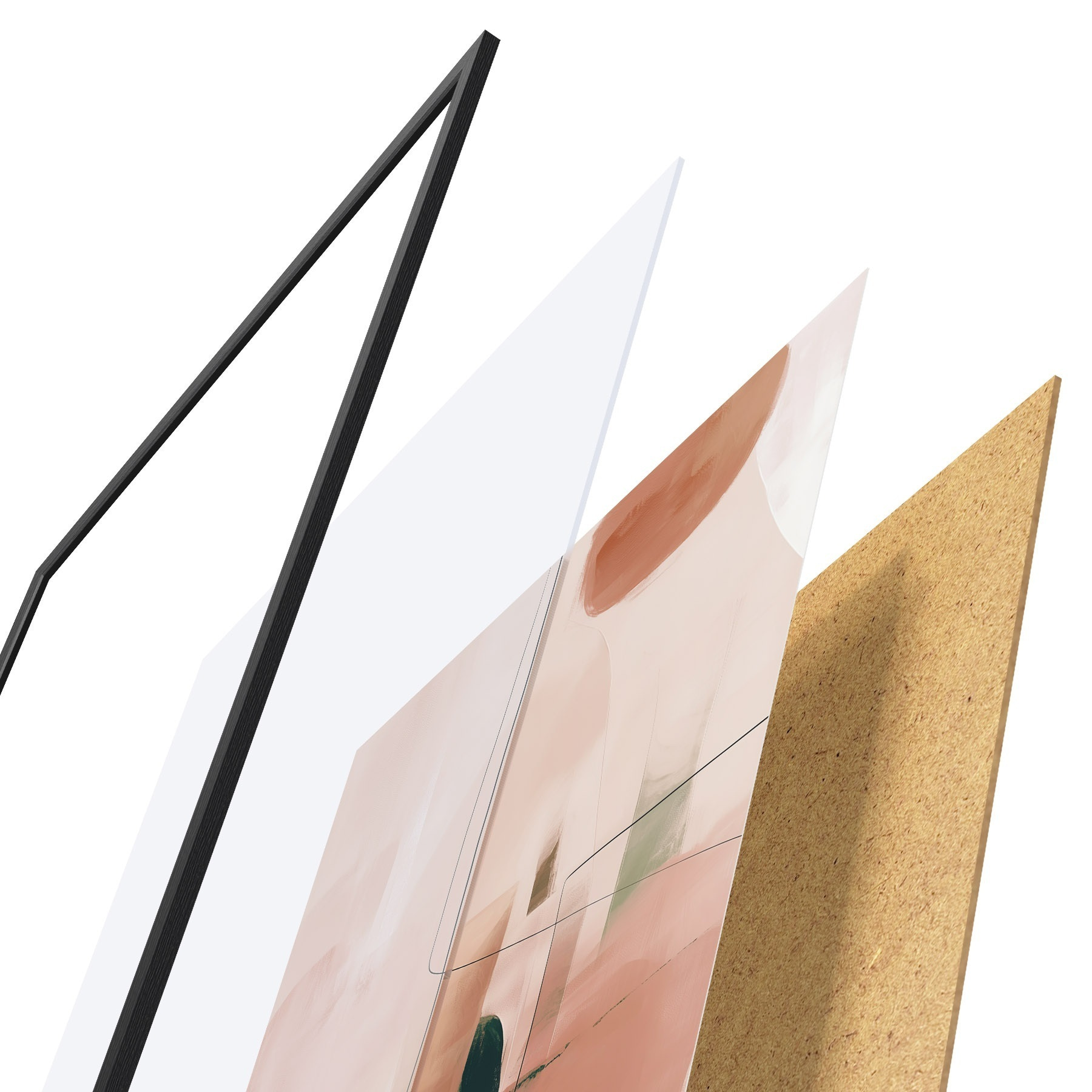 Das Poster besteht aus einem Rahmen, Plexiglas, einem gedruckten Bild und einer Rückwand aus Spanplatten. Dank der Halterungen auf der Rückseite kann das Poster sofort an die Wand gehängt werden.